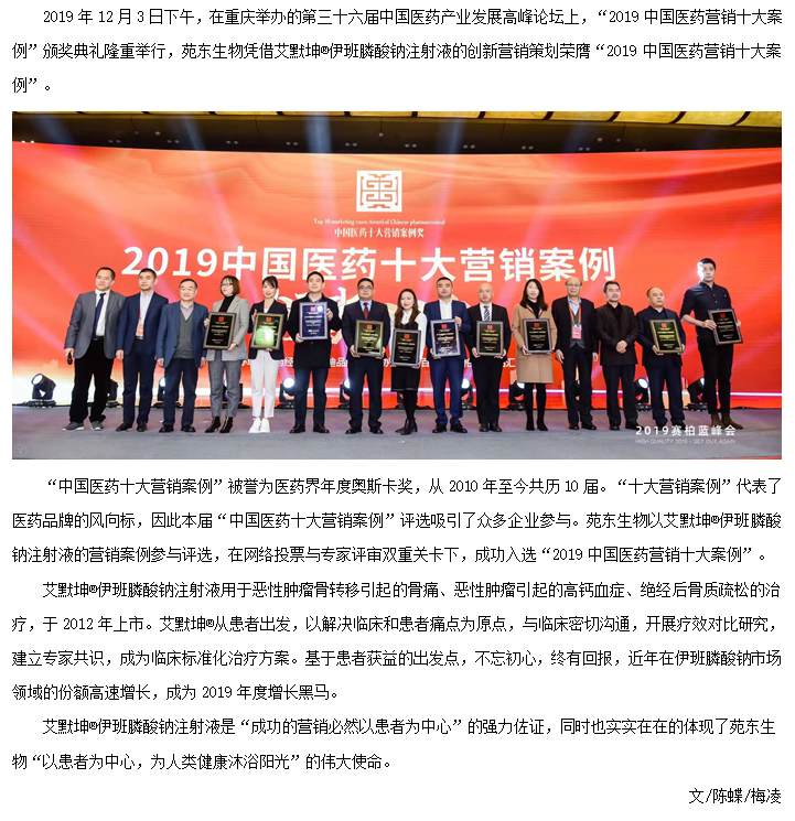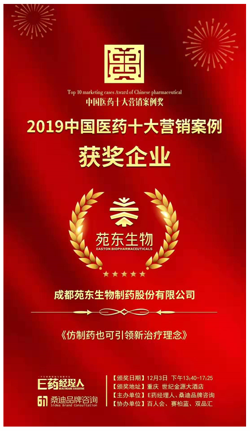 乐鱼在线(中国)生物荣获“2019中国医药营销十大案例”奖